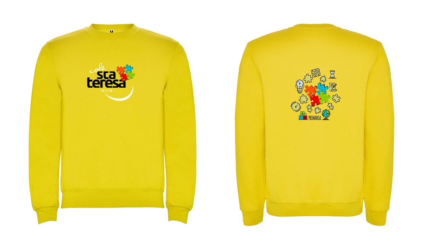 Presentamos nuestra Sudadera Algodón Amarilla, diseñada especialmente para el colegio Santa Teresa. Esta camiseta en vibrante color amarilla, fabricada en un tejido técnico de secado rápido, asegura comodidad y frescura durante todo el día. Ideal para actividades al aire libre o deportivas, este material de alta calidad garantiza un rendimiento óptimo. Con estampado a todo color del colegio en la parte delantera y trasera, esta prenda representa estilo y funcionalidad en una sola pieza.