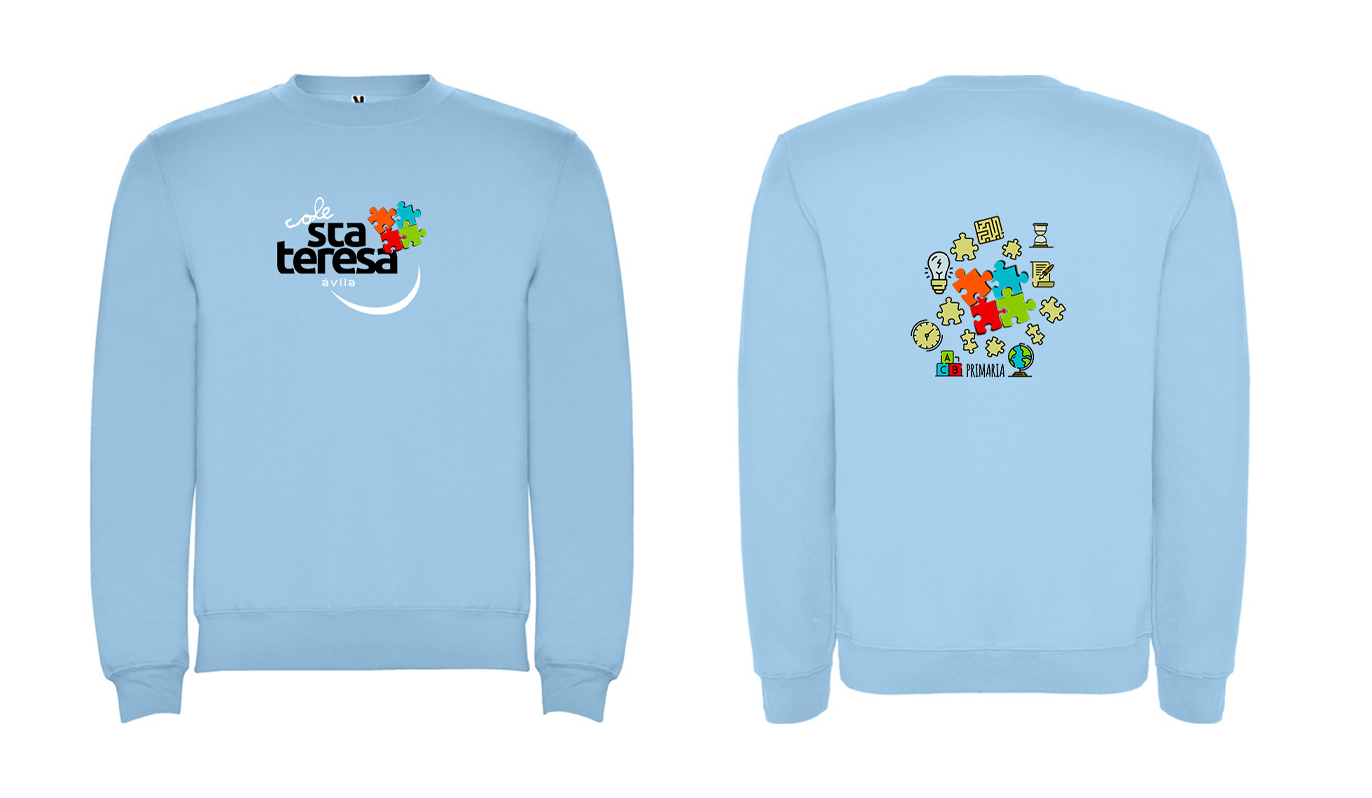 Presentamos nuestra Sudadera Algodon Azul Calro, diseñada especialmente para el colegio Santa Teresa. Esta camiseta en vibrante color azul claro, fabricada en un tejido técnico de secado rápido, asegura comodidad y frescura durante todo el día. Ideal para actividades al aire libre o deportivas, este material de alta calidad garantiza un rendimiento óptimo. Con estampado a todo color del colegio en la parte delantera y trasera, esta prenda representa estilo y funcionalidad en una sola pieza.